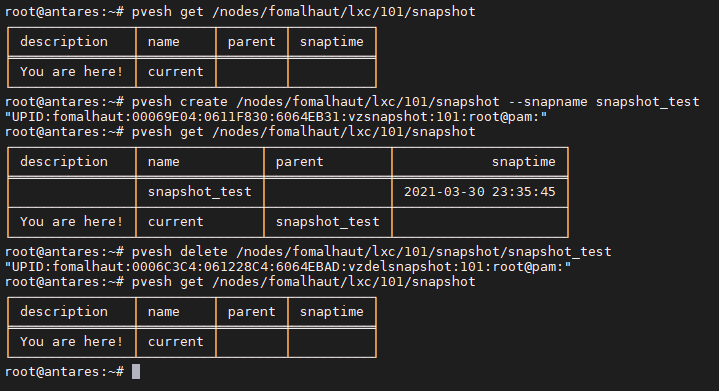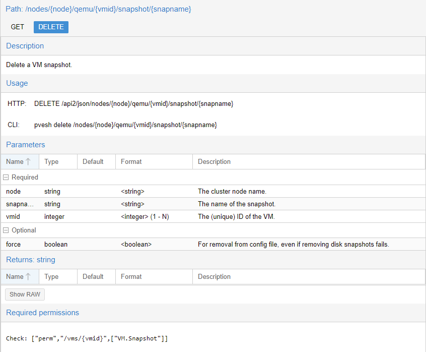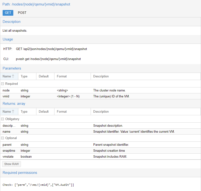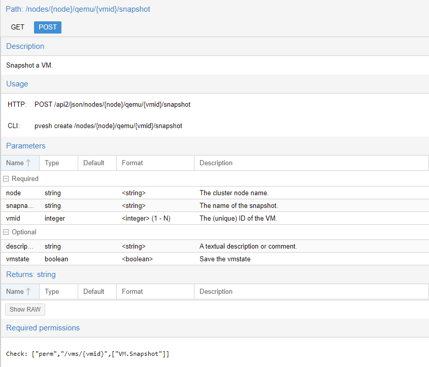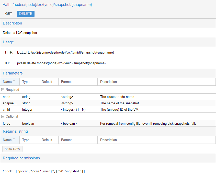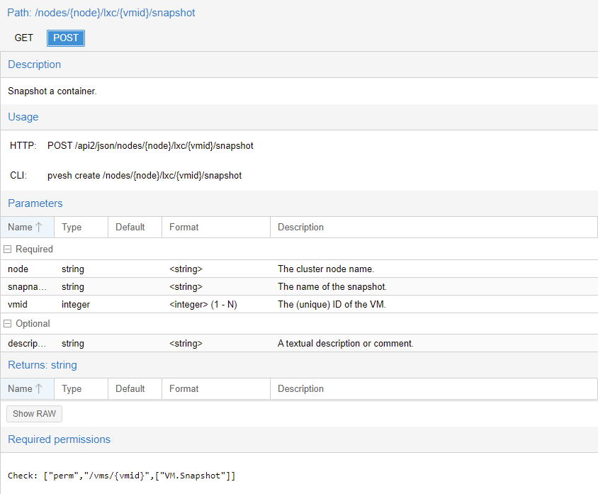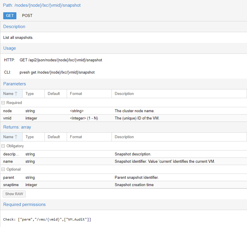 Proxmox Virtual Environment API is a core element that rest of management interfaces is built on. It provides us with an easy way to automate tasks like making and deleting snapshots at programmed intervals. Lets have a look at endpoints that we will need for managing snapshots of LXC container: